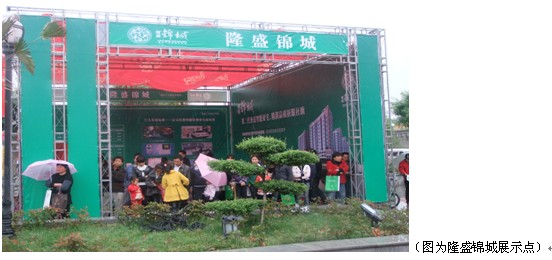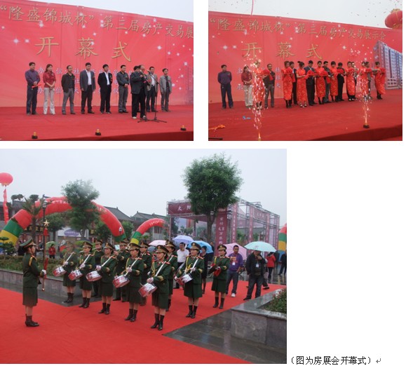 2011年5月22日,以“隆盛錦城”冠名的第三屆房產交易展示會舉行。“隆盛錦城”杯第三屆房產交易展示會在綿綿細雨中拉開帷幕,這也是年初以來系列房產新政后的第一個房展會。從參展企業、參展樓盤和參觀市民的人數來看,雖然天氣不好,但本次展會人氣依然不錯,但與以往不同,本屆展會購房者等待觀望情緒明顯,但許多開發商同時推出不同的促銷活動,還是能吸引客戶眼球的。