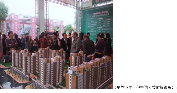 隆盛錦城作為此次房展會的冠名方,風采不輸于其他幾個項目,雖然下著小雨,但場面依然火爆。