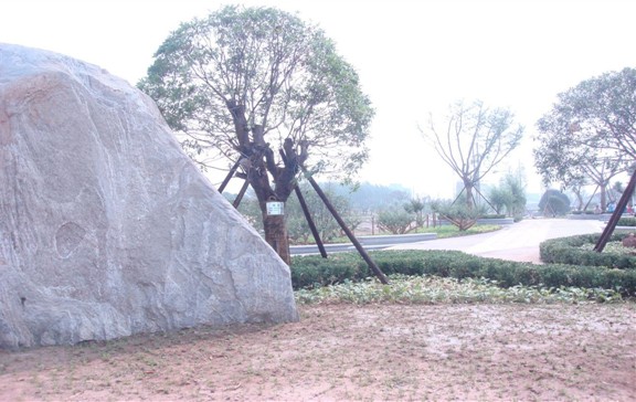 景觀石與桂樹雕塑景觀墻相輔相成