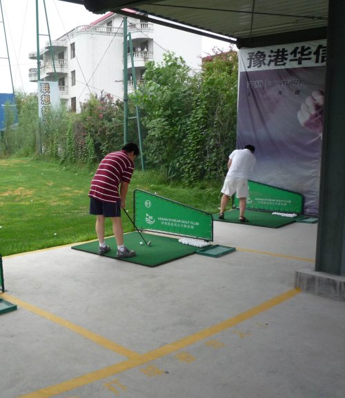 周六早上8點在約定的地方集合后,向目的地——思念果嶺山水進發。雖然天下著小雨,大家仍然興致勃勃,一路上有說有笑。車行出市區后,我們被路旁大片大片的路色植被吸引,雨后的草香伴著泥土的芬芳令人陶醉。天公作美路上還下著小雨,等我們一到高爾夫練習場天立馬見晴。大家一開始摸不著門道,經過幾輪之后漸漸熟悉了