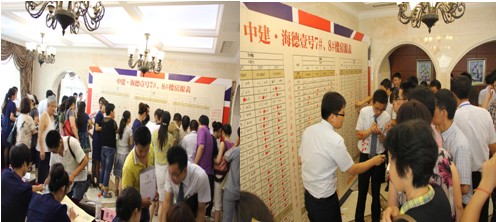 天氣雖然酷熱,卻抵擋阻不住客戶們積極的心情,他們一早就來到海德一號售樓部門口,排隊簽到,希望盡早簽下自己中意的樓盤。