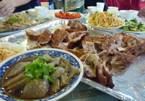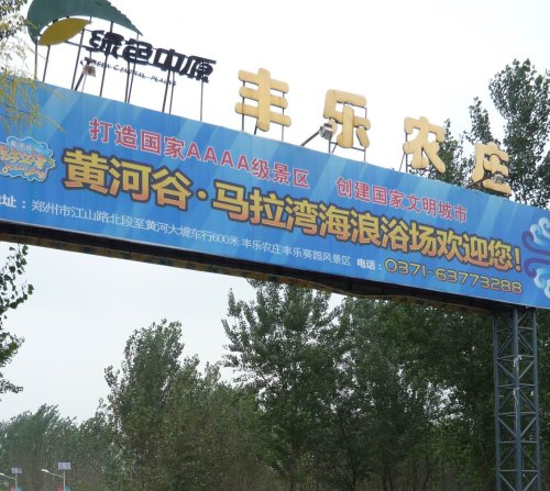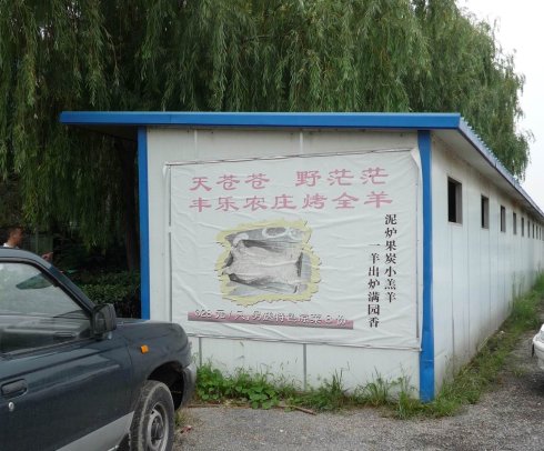 飯店門口的廣告語“天蒼蒼,野茫茫,豐樂農(nóng)莊烤全羊”