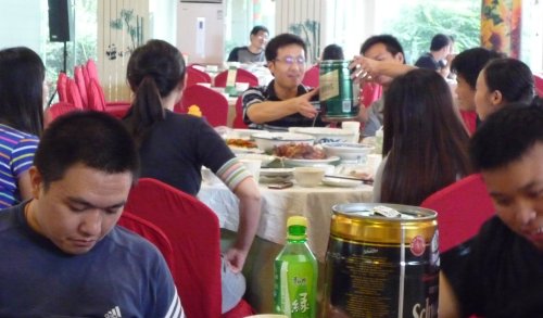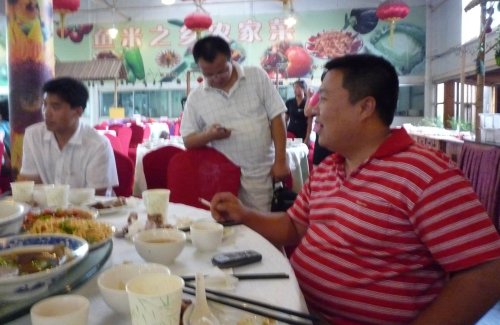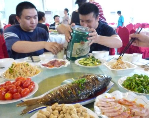經(jīng)過1個小時的激烈運動,大家筋疲力盡,要馬上補充營養(yǎng)。于是開往早已訂好座的飯店——豐樂農(nóng)莊。