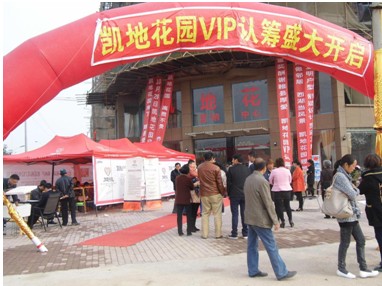 10月20日上午7時許,筆者趕赴凱地花園售樓中心,之間彩虹門、帳篷、桌椅、板凳均已擺設到位,現(xiàn)場已聚集了數(shù)十位客戶。據(jù)現(xiàn)場負責人張經(jīng)理介紹,認籌開始前一晚,所有工作人員已經(jīng)加班將所有現(xiàn)場設施搭設完成,凌晨便有客戶前來等候。“客戶的支持,讓我們動力十足”,張經(jīng)理如是說。筆者注意到,工作人員還細心的為客戶準備了早餐和瓜子花生,打發(fā)等待時間。