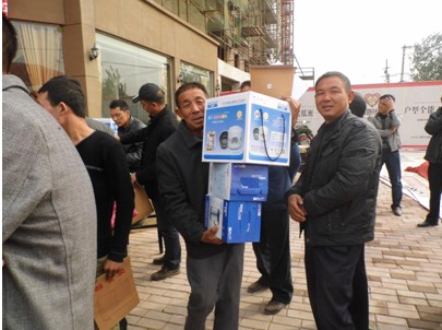 激動人心的抽獎環(huán)節(jié),于10時揭開序幕。客戶憑認籌協(xié)議均可參與抽獎活動。當天共設有三等獎項:三等獎為電飯鍋一臺,二等獎為折疊自信車一輛,一等獎為全自動洗衣機一臺。每位客戶限抽獎一次,未能抽中上述獎品,凱地花園也會送出的電水壺作為參與獎。據(jù)了解,當天,凱地花園共預備了價值萬元的獎品。“我們?yōu)槊恳晃豢蛻舳紲蕚淞硕Y品,可以說中獎率是100%”張經(jīng)理笑道。最終,某白姓客戶幸運摘得一等獎,將全自動洗衣機載回了家。