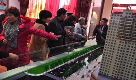 不為外面表演所動,聽置業(yè)顧問講解項目信息的客戶