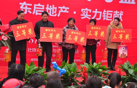 11月23日上午11時,最為激動人心的還是抽獎環(huán)節(jié)開始了,本次活動設(shè)一等獎1名是洗衣一臺,二等獎2名自行車一輛,三等獎5名金龍魚食用油一桶。部分客戶喜得大獎,歡天喜地,而沒有抽到獎品的客戶,也有盛世陽光項目部為大家準備的精美禮品和1000元房源優(yōu)惠大獎,當(dāng)天上午到訪的近500組客戶在一片歡聲笑語中滿意而歸,為盛世陽光在社旗打開局面奠定了良好基礎(chǔ),塑造樹立東啟地產(chǎn)的品牌知名度和美譽度。