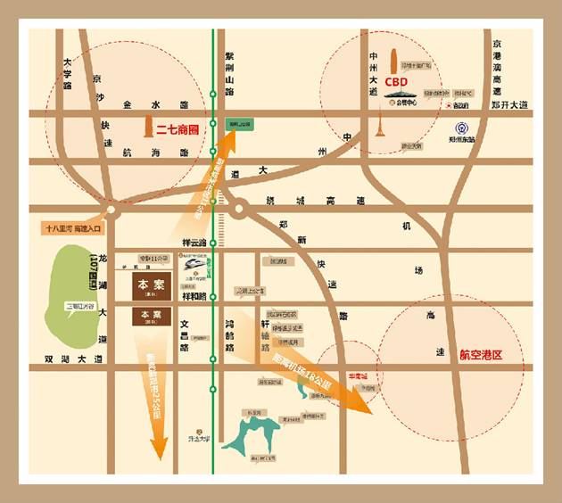 公路:鄭許快速通道、鄭新快速通道、機場快速通道縱貫龍湖南北,鄭州西南繞城高速、鄭堯高速穿境而過,距離鄭州11公里,距機場18公里,配上良好的路況,誰說鄭州堵車和誰急。