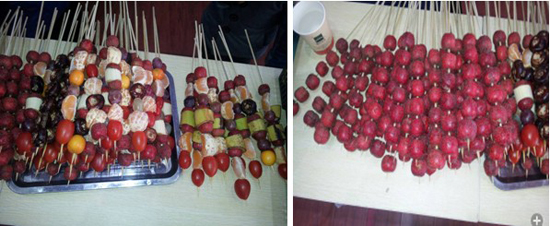 2013年12月14日盛世陽光舉辦了以“DIY手工制作冰糖葫蘆”為主題的周末暖場活動。此次活動在售樓中心舉行,活動邀請了我們所有的新老客戶,為了給大家一個溫馨、有趣的輕松周末,工作人員可謂是煞費苦心,提前準備了好多種可以做糖葫蘆的水果,洗干凈、分類放好。