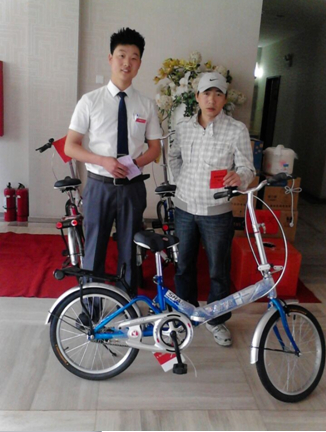 抽中獎品的客戶合影留念