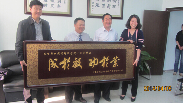 河南省尚正行房地產(chǎn)咨詢有限公司有幸與合作伙伴鄭州成功財經(jīng)學(xué)院共同慶祝成立十周年,和成功學(xué)院合作五年來,學(xué)院每年都為我司輸送幾十名優(yōu)秀人才,至此已經(jīng)有近百名成功學(xué)院學(xué)子在我司任職,其中擔(dān)任公司要職的也大有人在,介于與成功學(xué)院的友好合作,在成功學(xué)院舉行十周年慶之際,我司代表副總王宏偉,人事總監(jiān)凌云英及成功學(xué)院在我司代表一行前往學(xué)院祝賀,并送去我司對學(xué)院的美好祝愿以及感謝,希望學(xué)院宏圖大展、越辦越好,也希望我們的合作能夠繼續(xù)順利,共同為社會作出自己的貢獻(xiàn)!