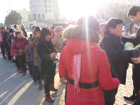 一大早,社旗的熱心市民便不畏嚴寒,在售樓部門口排成長龍,等待著活動的開始。一會兒售樓部門外陽光普照,伴隨著大家的歡聲笑語把一顆顆新鮮飽滿的大白菜發到大家手中,希望能在這明媚的天氣中給大家再增溫暖!