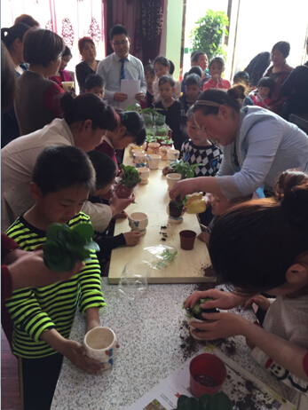 426日上午盛世項目舉行公益宣傳活動為霧霾贈點盆栽活動。一大早,花盆、植物、工具擺滿了桌子,前來參加的客戶帶著孩子們也早等候在桌旁,準備親自動手裝扮自己喜歡的植物種類,碧玉、虹之玉、發財樹等多種種類供大家選擇。