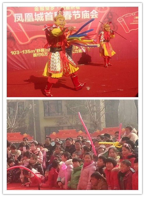 猴年大戲怎么能少得了悟空呢,美猴王派發魔術氣球,一度引起臺下小伙伴的熱搶。