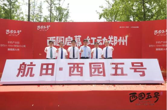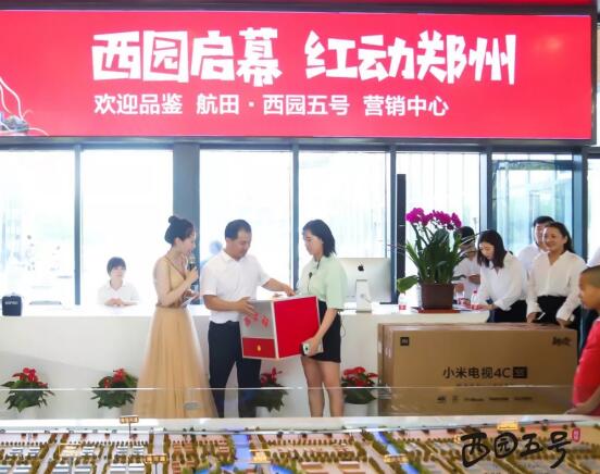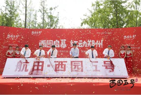 致辭結(jié)束后,彩炮齊鳴時。河南省航田產(chǎn)業(yè)園開發(fā)有限公司總經(jīng)理劉彥山、副總經(jīng)理王丁丁、總經(jīng)理助理曲彥彬、總經(jīng)理助理/營銷策劃中心總監(jiān)谷振雷、財務(wù)總監(jiān)路仁乾、尚正行房地產(chǎn)咨詢有限公司事業(yè)三部總經(jīng)理劉兵共同為項目揭幕,航田·西園五號營銷中心正式開啟!