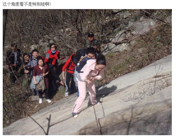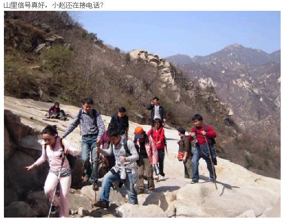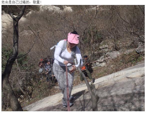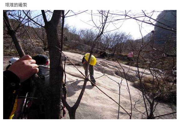 以前只在電視上見到過的畫面,這次尚正行的勇士們這次深刻體會到了,攀巖是有技巧的,腳下是關鍵,繩子找平衡,配合最重要,男士完成的還是很完美的,女士們除個別外,其他都是生拉硬推過去的,沒辦法,女士們是不太適合爬繩的(參見電影風聲)。路途之上,某人一直這樣安慰經受爬繩驚嚇的人們,“等這次的旅行漸漸被遺忘,這根繩子將成為唯一的銘記”。