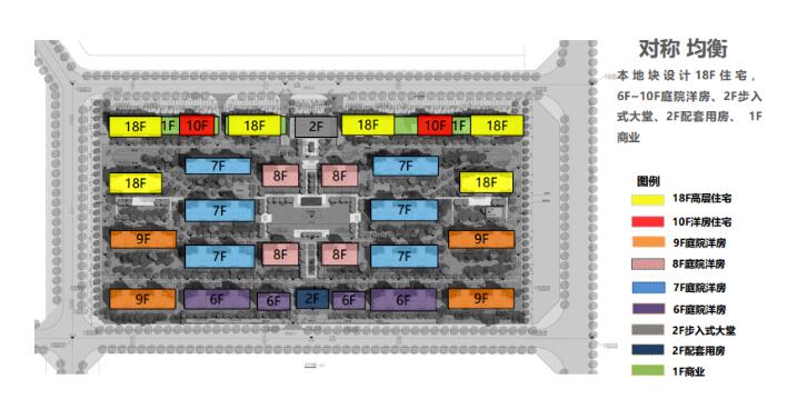 雙蕊:從這個規(guī)劃圖上可以看出來,就它的整個地塊是以洋房產品為主的,就是有20棟洋房,6棟小高層。并且它這個小高層規(guī)劃的也比較巧妙,就是它的高層全部分布在整個小區(qū)的北邊。也就是說,像高層的業(yè)主,他可能從北大門進去,直接就到了他這個家門口。更多的這個小區(qū)的空間其實是全部給到了這個洋房的業(yè)主,可以說是占了這個小區(qū)總人口的一小半的洋房業(yè)主,享受了這個小區(qū)絕大部分的綠化空間和公共的空間,這個是比較合理的。