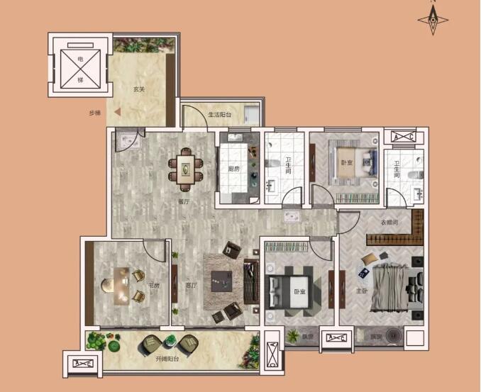 ①一梯一戶的設計讓你擁有屬于自己家的電梯廳,不論是做鞋柜、養(yǎng)花或者有小朋友的家庭放雜物,都能發(fā)揮很大的作用;