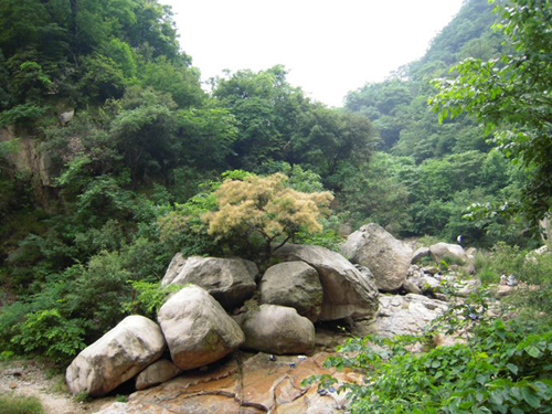 九點多開始進入到平頂山地界,車駛入服務區(qū),大家都下車稍稍休息了一下,這是一個很漂亮、整潔的服務區(qū),四周的風景開始變得好起來,大家的心情也開始高漲起來,有一點旅游的激情的氣息了。接著車開始進入大山里的盤山公路,從車里往外看,滿眼都是綠色,令人心曠神怡,似乎山里的清新空氣已經(jīng)侵染到游人心間,感覺心情一下子無比舒暢。